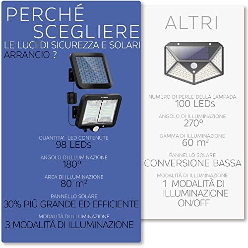 ARRANCIO Faretti Solari a LED Da Esterno, 98 LED Luci Solari Esterno Con Sensore Crepuscolare e di Movimento, Faro LED Esterno Con Pannello Solare Impermeabile IP65 (STANDARD_10W_2)