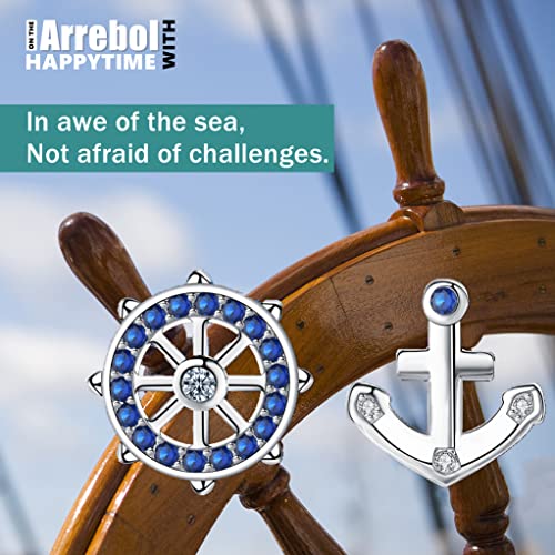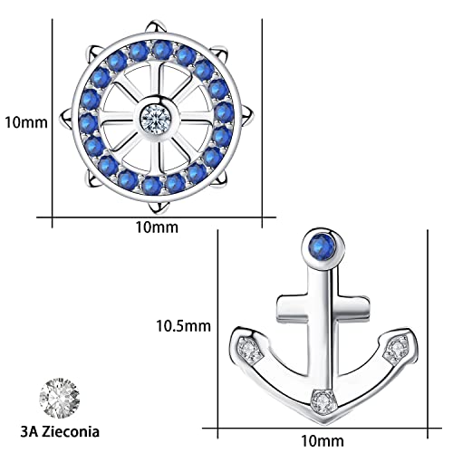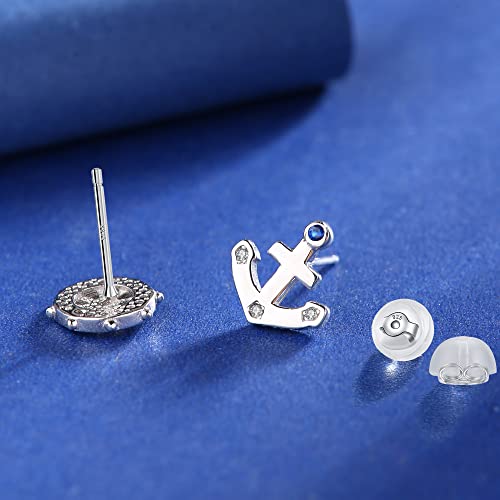 Arrebol Orecchini Ancora & Timone Donna Argento Sterling 925 con 3A Zirconia,Orecchin Asimmetrici con Scatola di Gioielli Regalo per Donne Ragazze