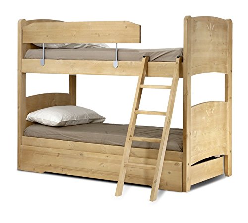 Arredamenti Rustici Letto a Castello con cassettone Zoldo in Legno massello-Grezzo (Non Verniciato)