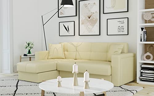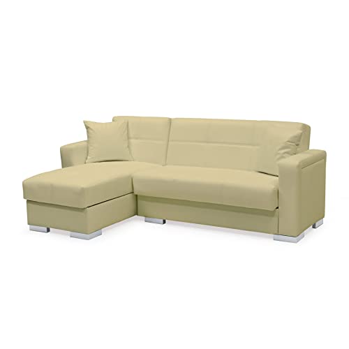 Arredo Divano letto angolare Avada Chaise Lounge Reversibile Destra o Sinistra angolare con contenitore 3 posti 212 cm x 145 cm (Ecopelle, Beige)