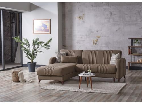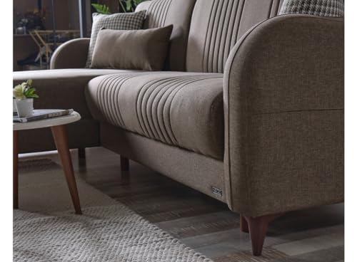 Arredo Divano Letto angolare con penisola Reversibile a destra/sinistra Contenitore Morris 3 posti in tessuto con chaise longue 244x82 cm (Marrone SLIM)