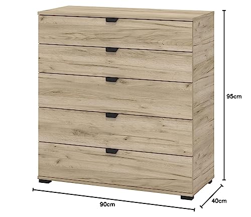 Arredo Stock Cassettiera in laminato effetto quercia con 5 cassetti, 90x40x95
