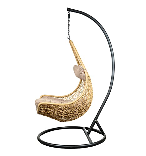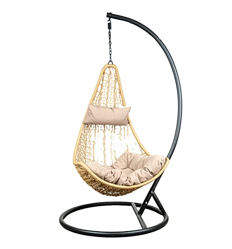 Arredo Stock POLTRONA SOSPESA DA ESTERNO IN PE RATTAN E STRUTTURA IN METALLO BEIGE CON CUSCINO, 120X195 CM