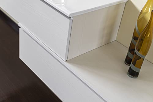La collezione è disponibile nelle colorazioni rovere well, frassino moire e olmo perla e nelle due varianti da 130cm e 160cm.
