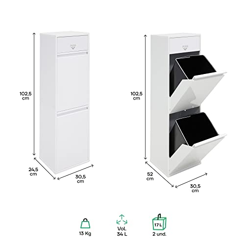 Arregui Confort CR231-B Pattumiera per raccolta differenziata con apertura superiore a spinta, 2 secchi, mobile in acciao per differenziata, 2 x 17L (34L), bianco