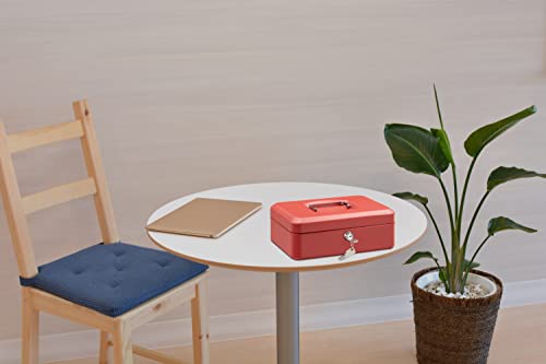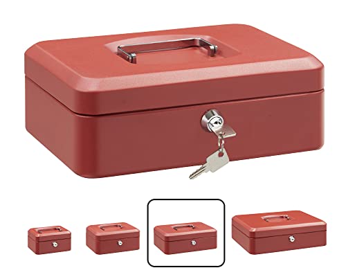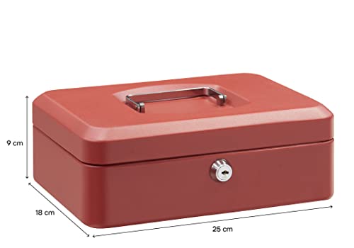 ARREGUI Elegant C9234 Cassetta di sicurezza con chiave per contare e trasportare denaro | Cassetta Portavalori in acciaio con vassoio Portamonete | Cassaforte portatile de 25 cm di larghezza | Rossa