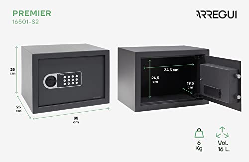 ARREGUI Premier 16501-S2 Cassaforte in Acciaio con Serratura Elettronica, Cassaforte a Mobile per Abitazioni, Tastiera con Codice Programmabile, con Chiave di Emergenza, 25 x 35 x 25 cm, 16 L