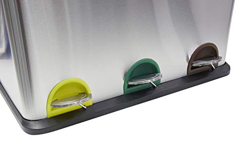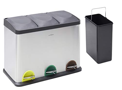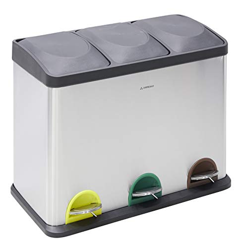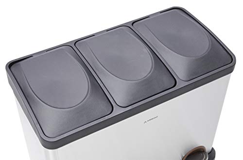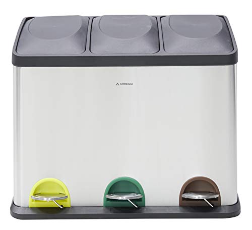 Arregui Step Bin Pattumiera per raccolta differenziata in acciaio inox con 2 scomparti e 3 cubetas, Grigio
