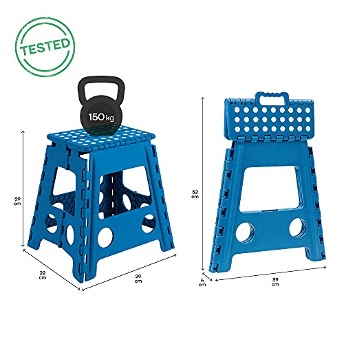 39 CM DI ALTEZZA: le misure dello sgabello aperto sono di 39 x 29 x 22 cm (altezza x larghezza x profondità). Le misure dello sgabello chiuso sono di 52 x 39 x 4,3 cm (altezza x larghezza x profondità).
