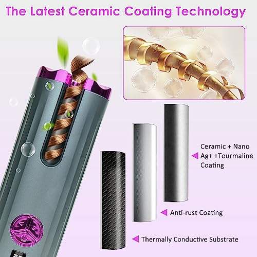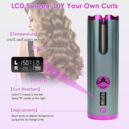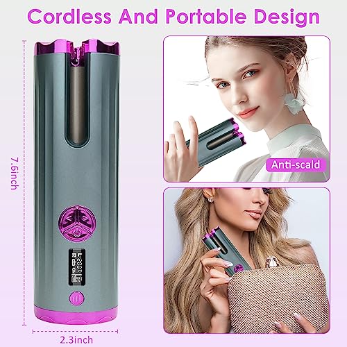 Arricciacapelli Automatico, Arricciacapelli Portatile Ricaricabile Wireless con Schermo LCD Antiscottatura, Arricciacapelli Professionale in Ceramica, 6 Temperature Regolabil (Grigio)