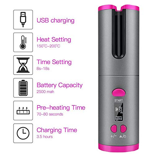 Facile da indossare e da usare: il ferro arricciacapelli senza fili è piccolo e delicato e facile da trasportare e utilizzare. Puoi creare capelli belli e naturali in qualsiasi momento ovunque. Basta mettere i capelli nel tubo arricciacapelli, poi premere il pulsante per arricciare i capelli naturalmente, il che installa solo temperatura, ora e direzione e regola in modo intelligente la dimensione dei ricci senza alcuna competenza.