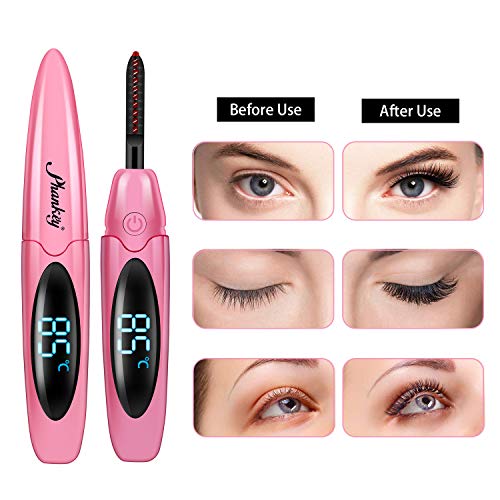 Arricciaciglia riscaldato, elettrico per un'arricciatura naturale veloce che dura 24 ore, mini piegaciglia ricaricabile USB, con display LCD, sicuro, senza hardware (rosa)
