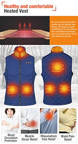 ARRIS Gilet riscaldato da donna, con riscaldamento elettrico, caldo, vestibilità aderente, regolabile, per campeggio all'aperto, escursionismo, golf (batteria da 7,4 V), Blu, taglia unica - 3XL