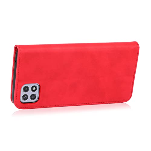 ARRYNN Cover per Samsung Galaxy A22 5G con Vetro temperato,Portafoglio in Pelle Cover Samsung Galaxy A22 5G,Custodia a Libro Supporto Magnetica Portafoglio per Samsung Galaxy A22 5G - Rosso