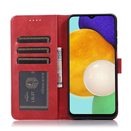 ARRYNN Cover per Samsung Galaxy A13 4G con Vetro temperato,Portafoglio in Pelle Cover Samsung Galaxy A04S,Custodia a Libro Supporto Magnetica Portafoglio per Samsung Galaxy A13 4G / A04S - Rosso