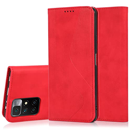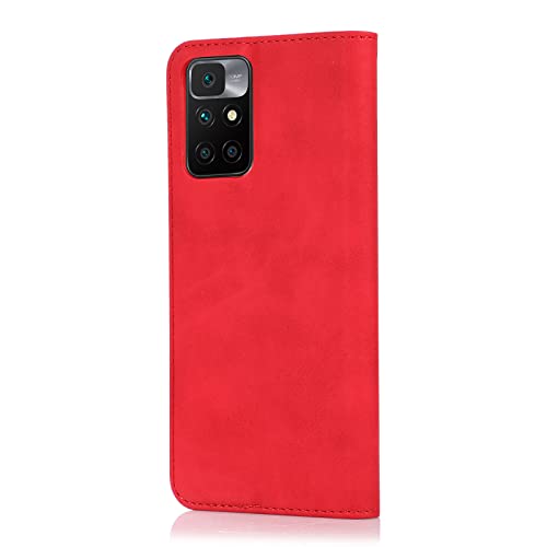 ARRYNN Cover per Xiaomi Redmi 10 con Vetro temperato,Portafoglio in Pelle Cover Xiaomi Redmi 10,Custodia a Libro Supporto Magnetica Portafoglio per Xiaomi Redmi 10 - Rosso