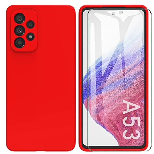 ARRYNN Custodia per Samsung Galaxy A53 Cover + Pellicola Protettiva Vetro Temperato,Liquid Silicone TPU Case Cover per Samsung Galaxy A53 - Rosso