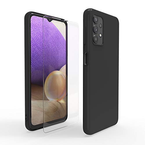 ARRYNN Custodia per Samsung Galaxy A32 5G + Pellicola Protettiva Vetro Temperato,Liquid Silicone TPU Custodia Case Cover per Samsung Galaxy A32 5G - Nero