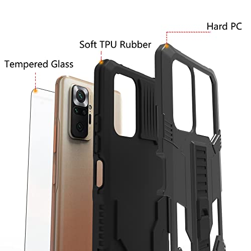ARRYNN Custodia per Xiaomi Redmi Note 10 PRO + Pellicola Protettiva Vetro Temperato,Staffa Silicone TPU Custodia Case Cover per Xiaomi Redmi Note 10 PRO - Nero