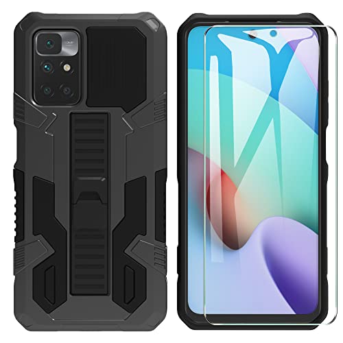 ARRYNN Custodia per Xiaomi Redmi 10 + Pellicola Protettiva Vetro Temperato,Staffa Silicone TPU Custodia Case Cover per Xiaomi Redmi 10 - Nero