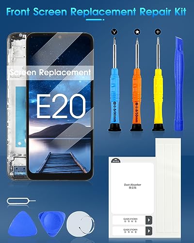 【Pacchetto】: La confezione include 1 * schermo per Motorola Moto E20 + 1 * set di strumenti di riparazione + 1 * pellicola protettiva + 1 * adesivo impermeabile.