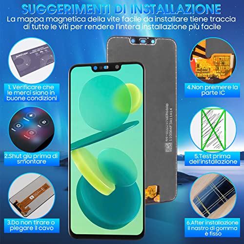 【Qualità Garantita】: Schermo LCD sostitutivo di alta qualità per Huawei Mate 20 Lite, visualizza le immagini in modo più chiaro e fedele. Ogni schermo è stato testato prima della spedizione con test di alta e bassa temperatura, vibrazioni e altri test di invecchiamento dal team QC. Si avvicina il più possibile a un nuovo schermo originale.