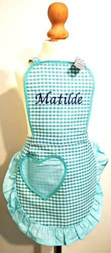 Artea - Grembiule Bambini, Personalizzato con Nome Ricamato a Mano in 100% Cotone Donna Bambina Chef, Pasticcerie, Pizzaiolo, Grembiule Barbecue, Parannanza Cucina Bambini
