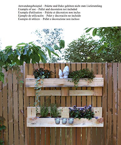 Decorazione da giardino - ideale come decorazione da giardino per pallet europei e pallet usa e getta, il complemento perfetto per i mobili di pallet. Così trasformerete una semplice tavolozza in una moderna mensola per fiori.