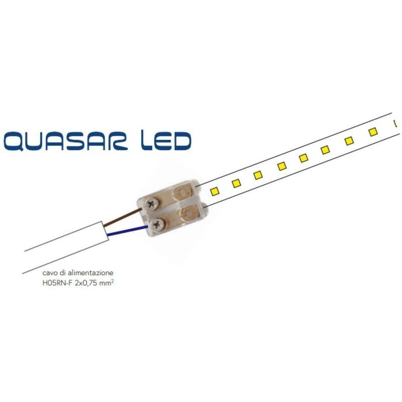 CONNETTORE DI ALIMENTAZIONE A VITE PER STRIP LED HV075 per alimentare la striscia QUASAR LED per cavi elettrici sino a 1mm2 Il set è completo di: • 1 connettore • 1 cappuccio passacavo • 1 tappo finale • 2 viti M2x4 • 2 viti M2x4,75
