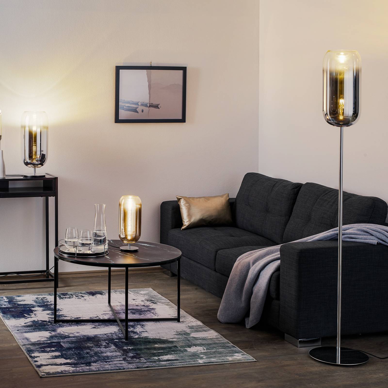 Lampada da tavolo in vetro Gople per un'affascinante illuminazione d'accento La lampada da tavolo Gople con il suo paralume di vetro fatto a mano nella vecchia tradizione veneziana irradia un design innovativo e una luce d'atmosfera. Anche quando è spenta, la bellezza in filigrana della lampada da tavolo Gople la rende una decorazione della stanza, ma il suo fascino completo si dispiega non appena l'illuminazione è accesa, enfatizzando la diversità della finitura in vetro. Ogni lampada Gople è unica grazie al lavoro manuale eseguito con cura. Gople, con il suo design colorato e trasparente che attira l'attenzione in qualsiasi luogo, è un progetto del Bjarke Ingels Group (BIG), un gruppo di pianificazione urbana e architettura che è diventato noto per numerosi progetti, come il Museo Marittimo Danese nel 2013 o il Copenhagen Harbour Baths, un sistema di strutture balneari lungo la costa di Copenhagen. Gople è prodotto e distribuito dalla