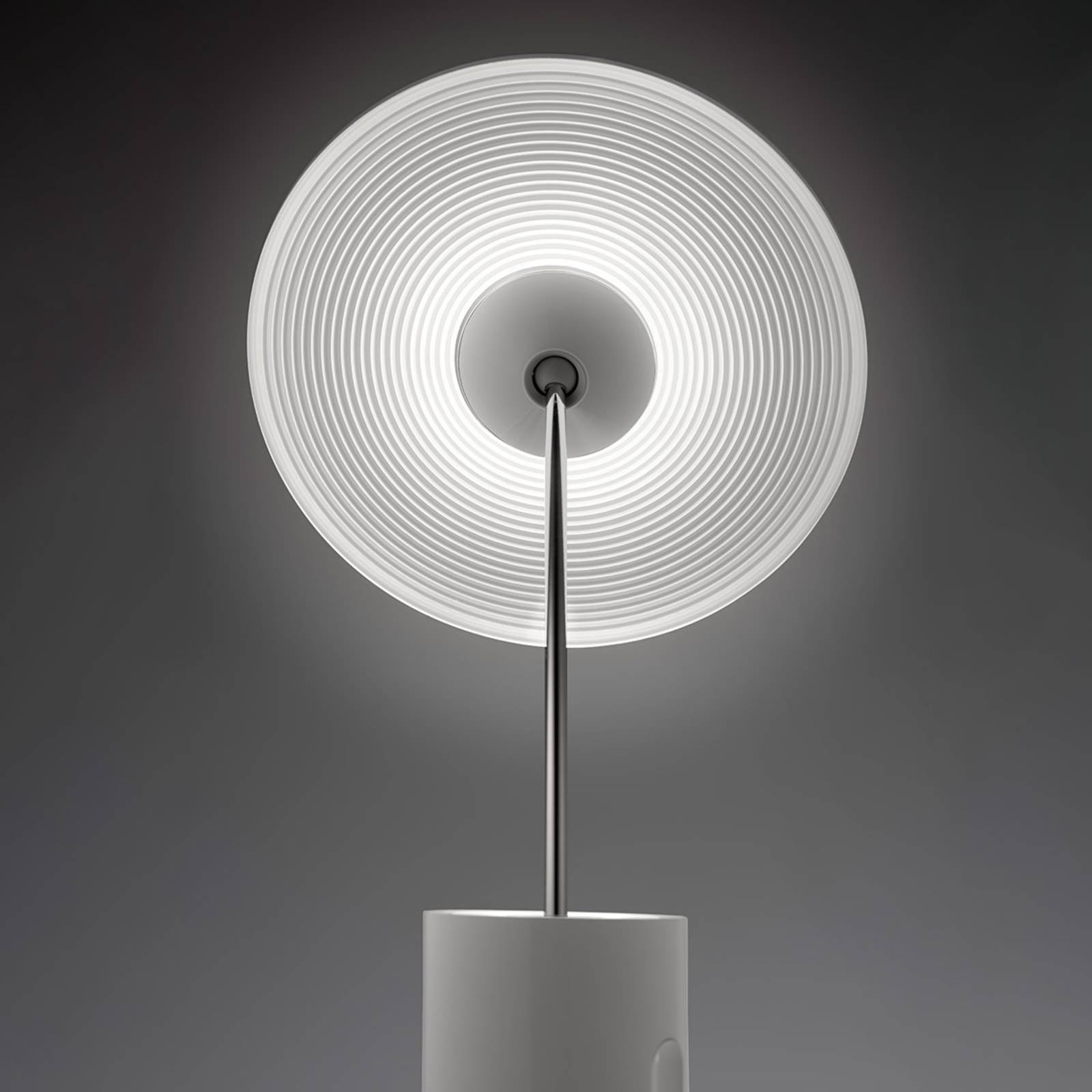 Lampada LED da tavolo Sisifo di design innovativo, con touchdimmer Firmata da Scott Wilson, la lampada LED da tavolo Sisifo testimonia in pieno la filosofia del noto designer americano che nelle sue creazioni cerca l'armonia tra funzionalità ed emozione. Sisifo è una lampada che bilancia il comfort visivo sul piano di lavoro e l'illuminazione dell'ambiente. Ingombra poco e quindi trova posto praticamente ovunque. La lampada presenta una spiccata personalità, con un piedistallo cilindrico contenente uno snodo per direzionare l'emissione e una testata LED di aspetto etereo. Da appoggiare sulla scrivania o anche sul comodino: ovunque la si disponga, la lampada da tavolo Sisifo diffonde una luminosità efficace che si può regolare con il touchdimmer integrato. Toccando brevemente il pulsante, la luce si accende e si spegne. Con una pressione prolungata si aziona invece il dimming, che aumenta o diminuisce alternatamente. Per il design della lampada LED da tavolo Sisifo, nel 2015 Scott Wilson è stato premiato con l'iF Product Design Award Germania.