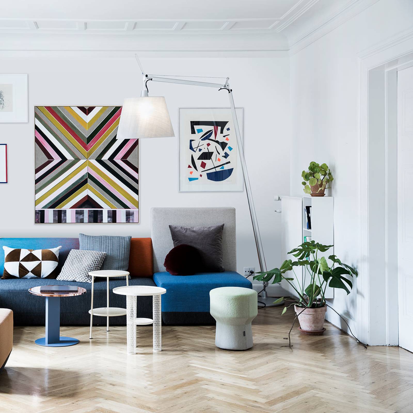 Tolomeo Maxi - oggetto cult XXL Da ben oltre 30 anni la lampada Tolomeo, progettata per Artemide da Michele de Lucci e Giancarlo Fassina è un vero oggetto cult e un elemento dal classico design. Dopo più di 30 anni, questo design noto in tutto il mondo è stata reinterpretato e si svela nell'imponente dimensione maxi di lampada da pavimento. Grazie alla sua meravigliosa altezza di oltre 2,50 m, attrae gli sguardi in qualunque stanza venga collocata. Garantito. Il paralume rivestito in tessuto è regolabile in tutte le direzioni ed emana una luce sia diretta che indiretta. Ovviamente anche la lampada da pavimento Tomoleo Maxi possiede, come le sorelle più piccole, dei bracci lunghi e flessibili che, un sistema di compensazione a molla, dopo la regolazione restano esattamente dove desiderato. Se ne origina una stabilità perfetta del braccio della lampada, non importa in quale posizione si trovi. Grazie alla dimensione, la lampada da pavimento Tolomeo Maxi può essere collocata ovunque, dove è necessaria un'illuminazione dall'alto. Che venga quindi usata come illuminazione per il tavolo da pranzo, per il salotto di casa oppure in un ufficio moderno, garantisce sempre quel tocco di eleganza e, in ogni caso, la lampada da pavimento Tolomeo Maxi è un vero oggetto luminoso cult.