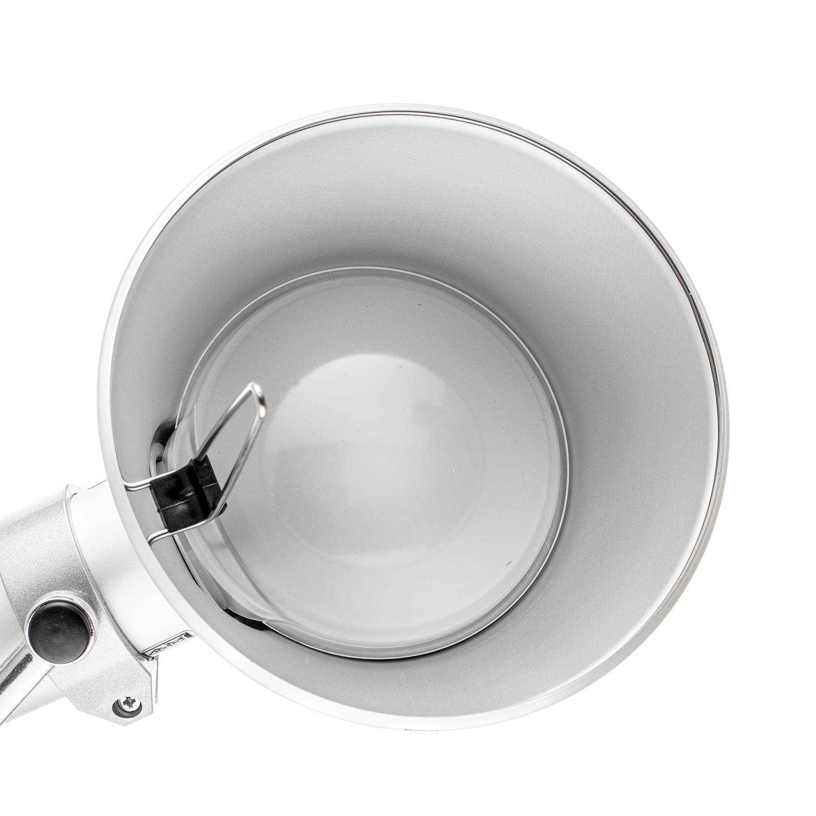 Pratica lampada LED a morsetto Tolomeo Pinza La lampada a LED Tolomeo Pinza torna utile ovunque serva un'illuminazione aggiuntiva. Come dice il nome, possiede una pratica morsa con cui si fissa la lampada su uno scaffale o sul piano del tavolo. Nella lampada sono incorporati efficienti LED che emettono luce bianca di tonalità calda per un'illuminazione morbida e accogliente. Il fissaggio è in alluminio lucido, la testata in alluminio satinato. La forma del paralume è quella tipica di tutte le lampade Tolomeo di Artemide. Con interruttore dimmer per regolare l'intensità della luce. L'estetico design, come quello di tutte le lampade Tolomeo, è firmato da Michele De Lucchi e Giancarlo Fassina, i due designer che nel 1986 diventarono famosi con la prima Tolomeo, la lampada da tavolo. La serie Tolomeo viene prodotta dalla rinomata azienda di illuminazione italiana Artemide ed è distribuita in tutto il mondo. Artemide opera a livello internazionale