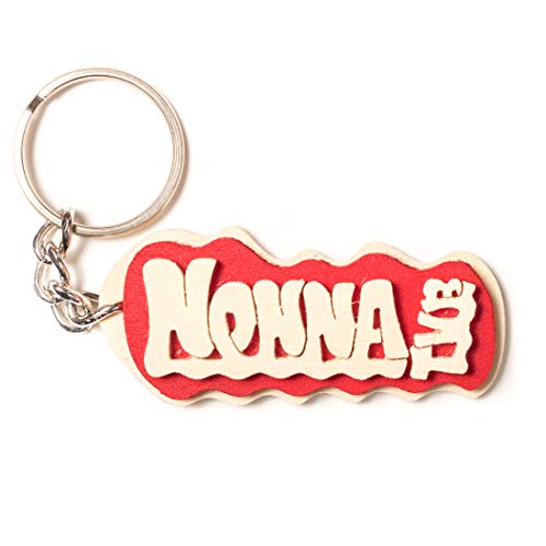Artepassione Portachiavi in Legno Fatto a Mano, Personalizzato con La Scritta Nonna Tvb, Rosso, 3 x 6 cm