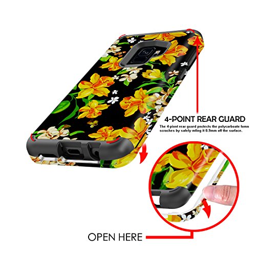 Artfeel Galaxy S9 Plus Custodia Orchidea Gialla Design, Samsung Galaxy S9 Plus Cover 3 Strato Ibrido Protezione Robusto PC+ Morbido Silicone Gomma Resistente Cellulare Cover
