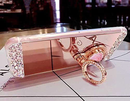 Artfeel Glitter Specchio Custodia per Samsung Galaxy A7 2018/A750, Bling Brillante Diamante Strass con Anello Supporto Cover,Ultra Sottile Chiaro Morbido Silicone Trucco Specchio Caso-Oro Rosa