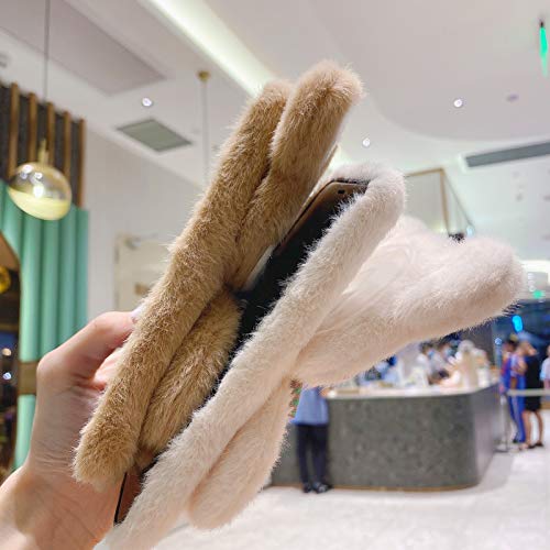 Materiale di alta qualità:Realizzato in peluche di pelliccia di coniglio artificiale e strato interno in silicone morbido flessibile,super morbido e leggero,protegge il tuo telefono da graffi,urti,sporco,polvere.Il peluche è super morbido,soffice,liscio,ti offre una presa comoda e può riscaldarti le mani in inverno.