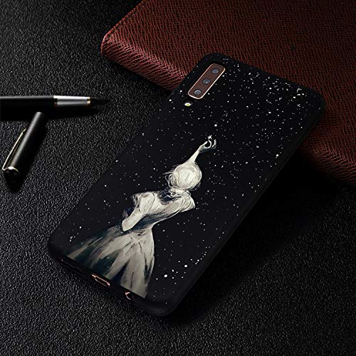 Artfeel Nero Morbido Silicone Custodia per Samsung Galaxy A7 2018/A750,Creativo Divertente Modello Opaco Flessibile TPU Cover,Ultra Sottile Leggero AntiGraffio Antiurto Caso,Stella Ragazza