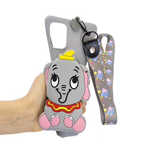 Artfeel Portafoglio Cover per Samsung Galaxy S21 Plus 5G,Carino 3D Cartoni Animati Morbido Silicone TPU Custodia con Cerniera Tasca Borsa e Cinturino Cordino al Collo Caso,Elefante Grigio