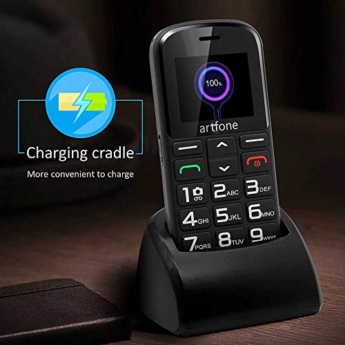 Artfone CS182 Telefono Cellulare per Anziani con Tasti Grandi | Base di ricarica | Funzione SOS | 1.77" Display | Doppia SIM | Chiamata Rapida | Torcia | Radio Suono Alto | Batteria Lunga Durata