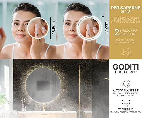 ✅ADOTTATE IL VOSTRO SPECCHIO - Vi offriamo opportunità di creare une combinazione irrepetibile che soddisfa le Vostre preferenze Grazie ad una opzione innovativa di adattazione potete scegliere dimensioni, colore di LED, tipo di interruttore, schermo meteo ed persino un altoparlante Bluetooth!