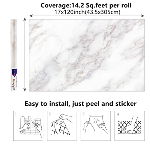【FACILE DA INSTALLARE】Basta staccare e incollare questa carta da parati in marmo, senza bisogno di colla aggiuntiva. Ci sono linee di griglia sul retro per misurare e tagliare facilmente, si può semplicemente tagliare questa carta di contatto in marmo con una forbice domestica per qualsiasi dimensione e forma, risparmiare tempo e budget.