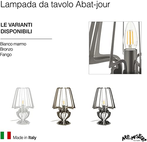 Arti & Mestieri Abat-Jour - Lampada da Tavolo Piccola di Design 100% Made in Italy - in Ferro, 24 x 36h cm (Fango)