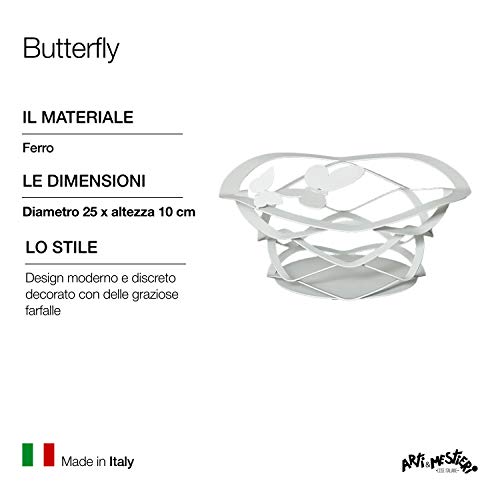Arti & Mestieri Butterfly - Cestino di Design 100% Made in Italy - in Ferro, 25 x 10 cm - Bianco Neve