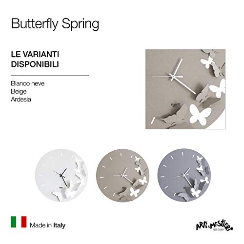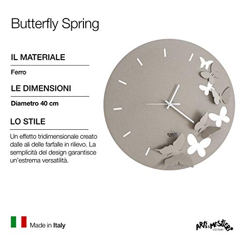 Arti & Mestieri Butterfly Spring - Orologio da Parete di Design 100% Made in Italy - in Ferro, Diametro 40 cm - Beige