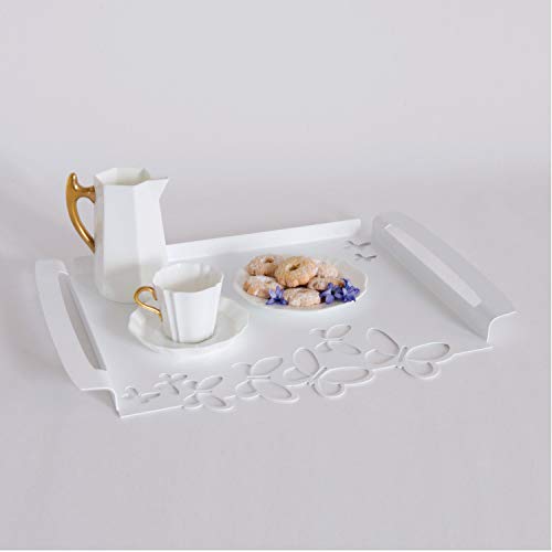 Arti & Mestieri Butterfly - Vassoio Grande di Design 100% Made in Italy - in Ferro, 46 x 30 cm - Bianco Neve