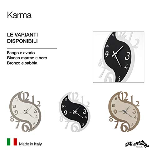 Arti & Mestieri Karma - Orologio da Parete di Design 100% Made in Italy - in Ferro, 36 x 46 cm - Bianco Marmo e Nero