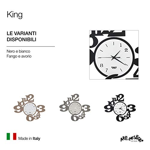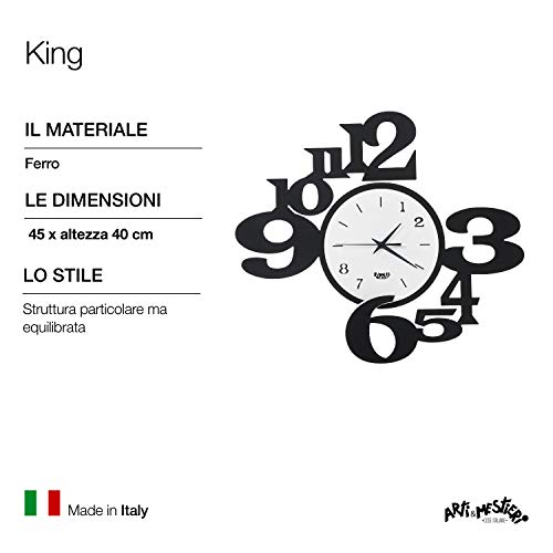 Arti & Mestieri King - Orologio da Parete a Chiasmo di Design 100% Made in Italy - in Ferro, 45 x 40 cm - Nero e Bianco