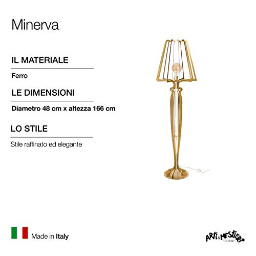 Arti & Mestieri Minerva - Lampada da Terra Raffinata di Design 100% Made in Italy - in Ferro, 48 x 166 - Oro Trasparent