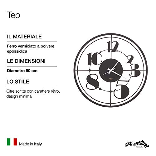 Arti & Mestieri Teo - Orologio da Parete di Design 100% Made in Italy - in Ferro, Diametro 50 cm - Nero Goffrato